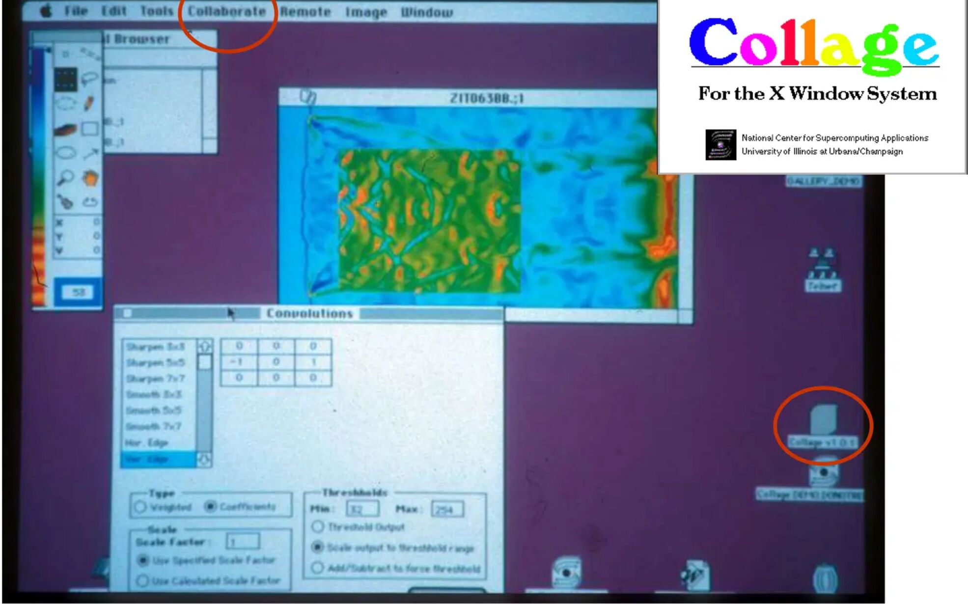 Οι ερευνητές είχαν ήδη επιτραπέζια απομακρυσμένη πρόσβαση σε υπερ-υπολογιστές με την εφαρμογή Telnet και απέκτησαν σύγχρονη συνεργασία με την εφαρμογή NCSA Collage. Η συνεργατική εφαρμογή διευκόλυνε την ανάλυση δεδομένων και την οπτικοποίηση τους στους επιτραπέζιους υπολογιστές. Η πρόσθετη ανάγκη για διαμοιρασμό εγγράφων υπερκειμένου με σημειώσεις οδήγησε τελικά στην ανάπτυξη του NCSA Mosaic, ο οποίος αρχικά ήταν μια απλή λειτουργία κάτω από το μενού της συνεργασίας.
