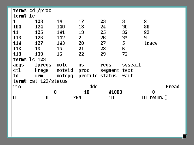 Η γραμμή εντολών για το Plan 9 βασίζεται στην λογική της αντίστοιχης για το Unix, από τους ίδιους κατασκευαστές, αλλά γίνοται βελτιώσεις. Το rc είναι απλούστερο και περισσότερο συνεπές με τον συνολικό σχεδιασμό του λειτουργικού συστήματος. Για παράδειγμα οι μεταβλητές είναι συμβολοσειρές και οι εντολές δεν σαρώνονται δεύτερη φορά.